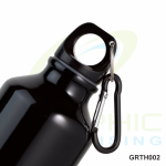 400-ml capacity bottle with aluminium body, available in a wide range of bright colours. With screw-on safety cap and metal carabiner for transport.